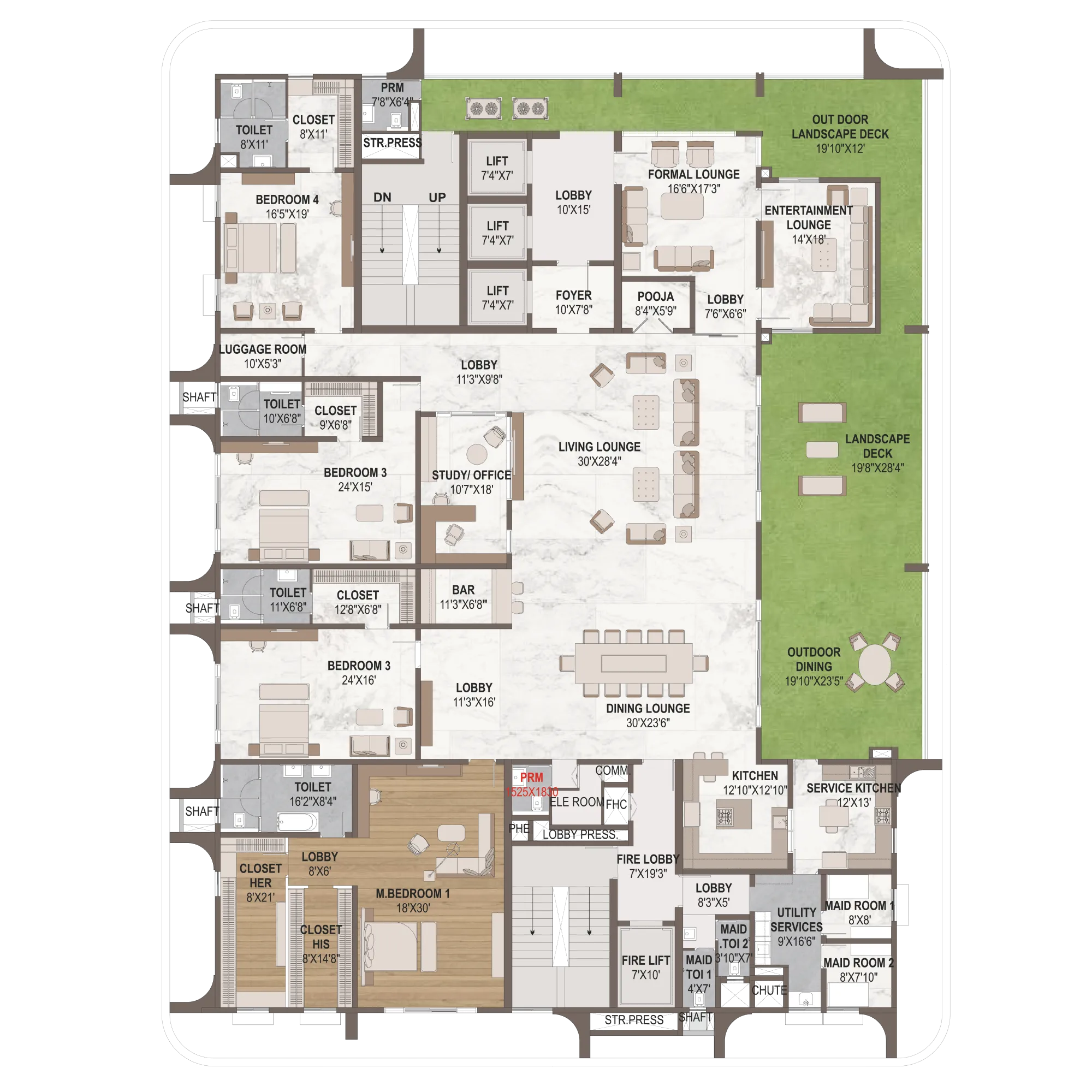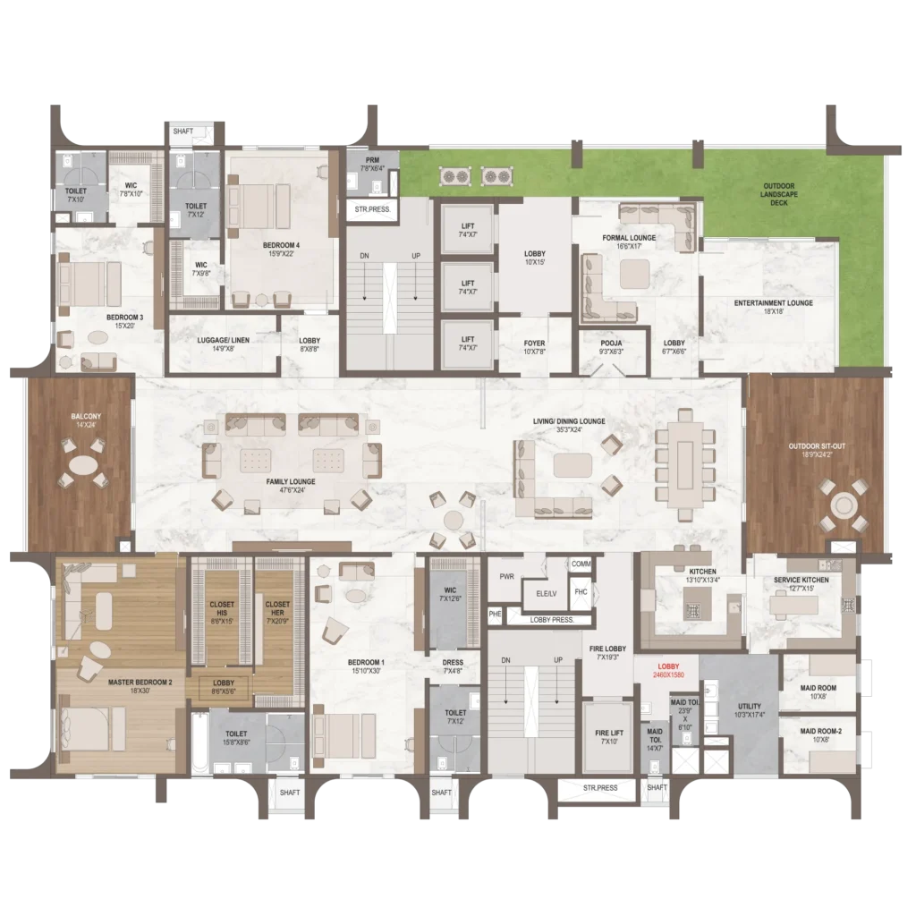 Experience Epitome of leisure & lavishness at our luxurious five level club house, where you can truly luxuriate, lounge & live. Dive into a world of exclusive amenities designed to offer you the best in leisure & a life of extravagance.